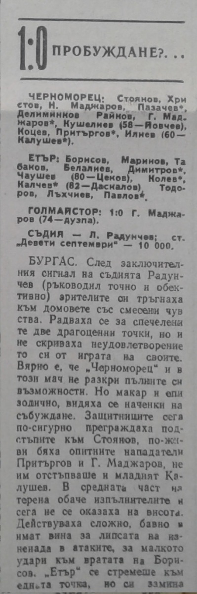 «Черноморец» Бургас - «Этыр» Велико-Тырново - 1:0