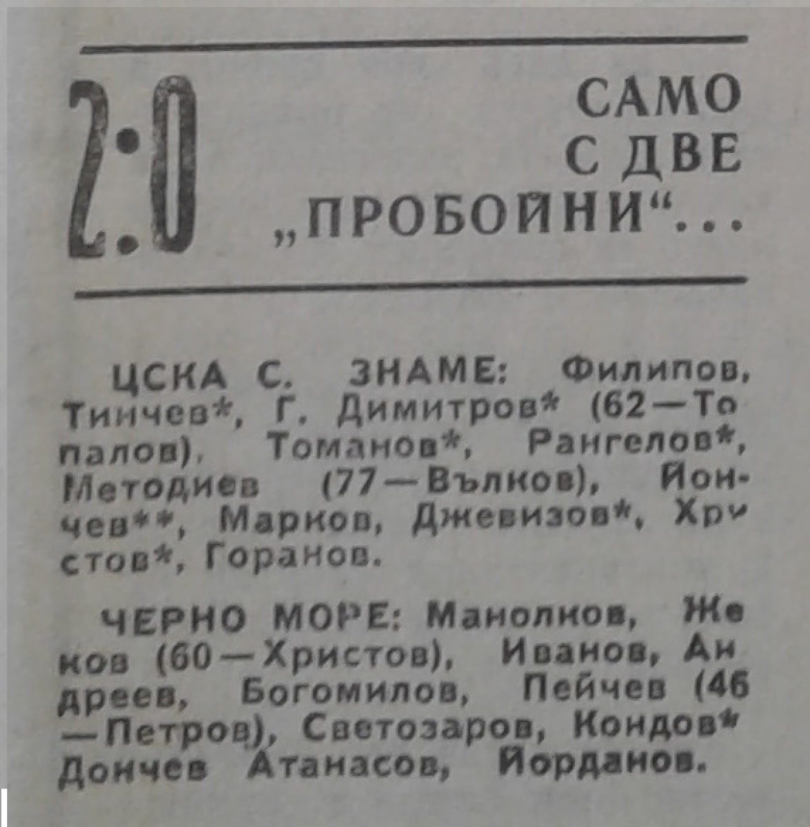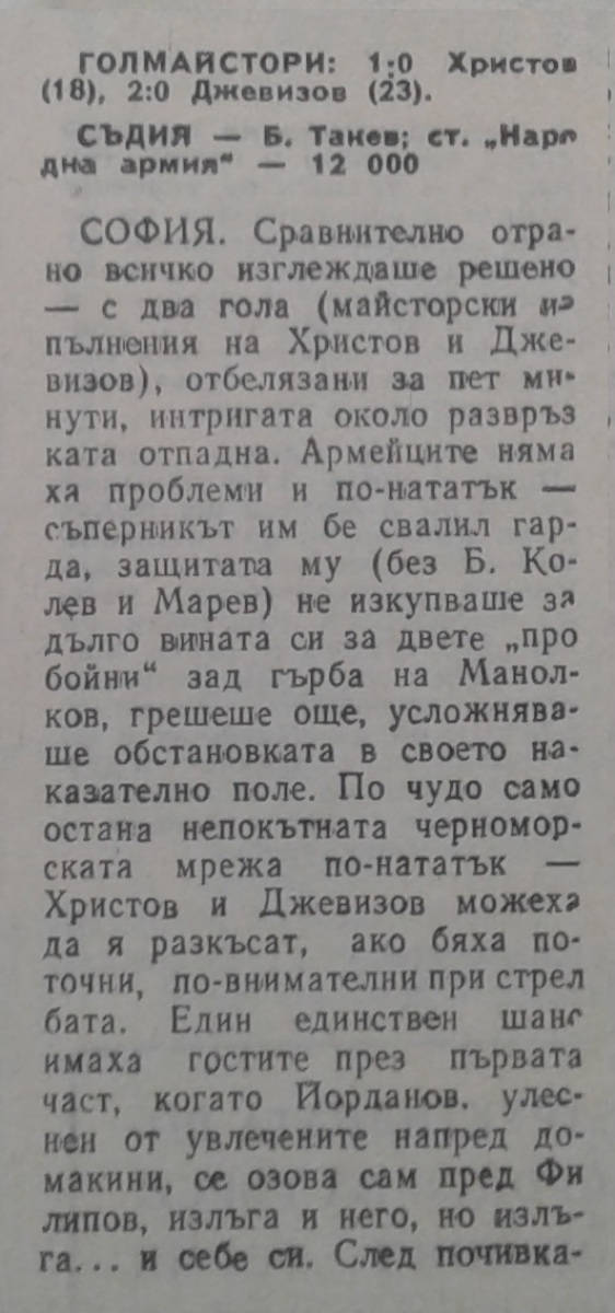«ЦСКА Септемврийско Знаме» София - «Черно море» Варна - 2:0