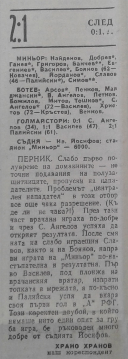 «Минёр» Перник - «Ботев» Враца - 2:1