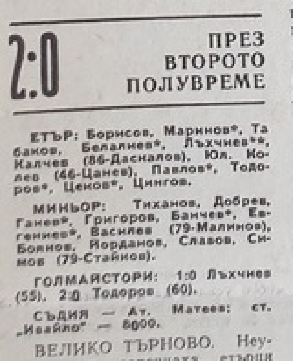 «Этыр» Велико-Тырново - «Минёр» Перник - 2:0