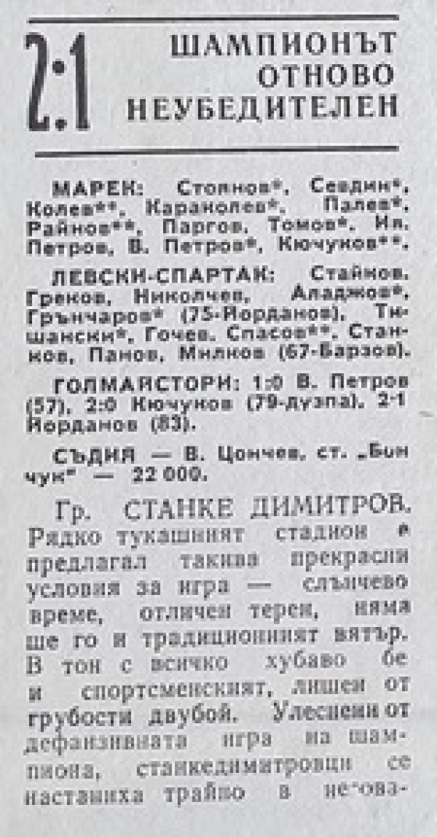 «Марек» Станке-Димитров - «Левски-Спартак» София - 2:1