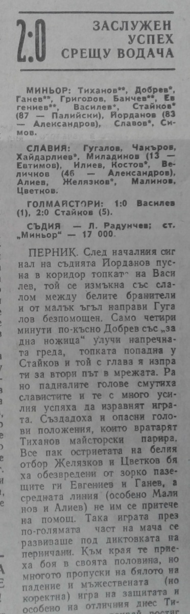 «Минёр» Перник - «Славия» София - 2:0