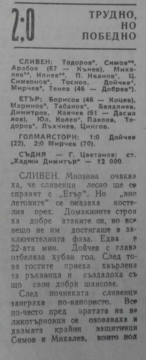 АФД Сливен - «Этыр» Велико-Тырново - 2:0