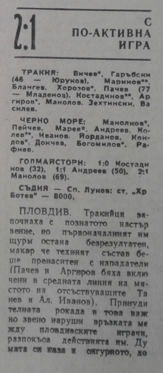«Тракия» Пловдив - «Черно море» Варна - 2:1