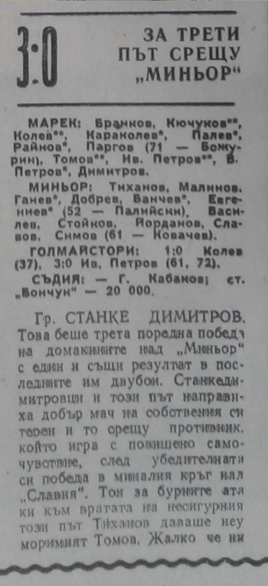 «Марек» Станке-Димитров - «Минёр» Перник - 3:0
