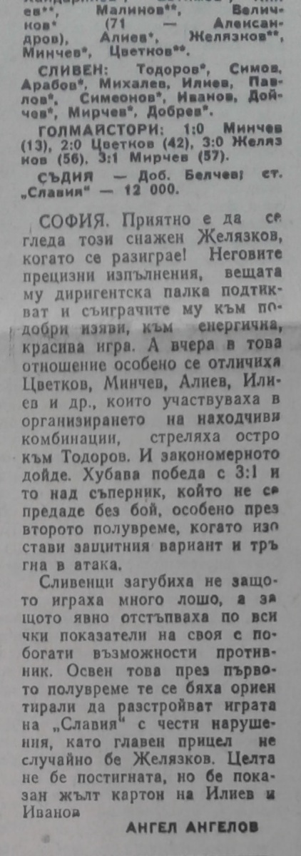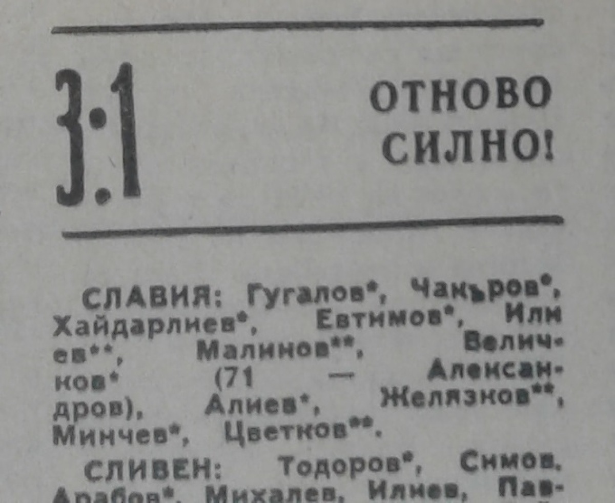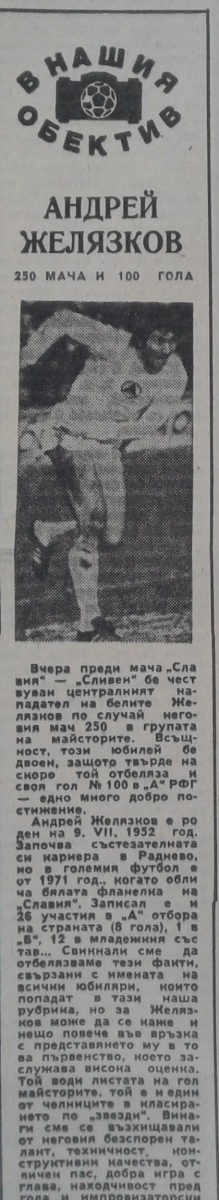 Андрей Желязков (Славия) провёл свой 250-й матч в А РФГ. Цонко Симеонов (Сливен) провёл свой 100-й матч в А РФГ.