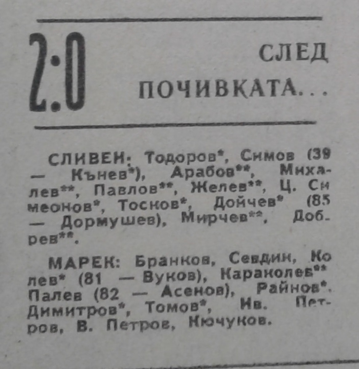 АФД Сливен - «Марек» Станке-Димитров - 2:0