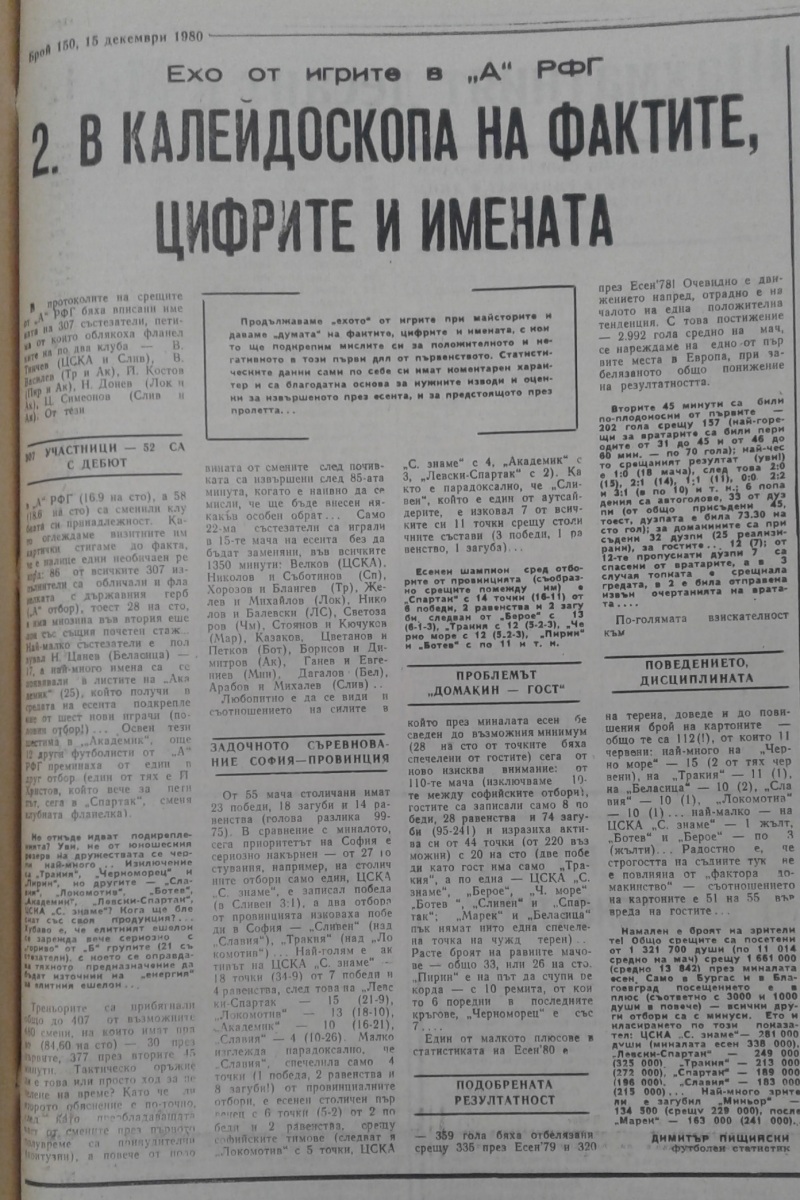 Красимир Борисов (Левски-Спартак) провёл свой 200-й матч в А РФГ. Георги Бонев (Лок. София) провёл свой 150-й матч в А РФГ.