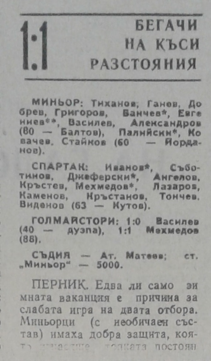 «Минёр» Перник - «Спартак» Плевен - 1:1
