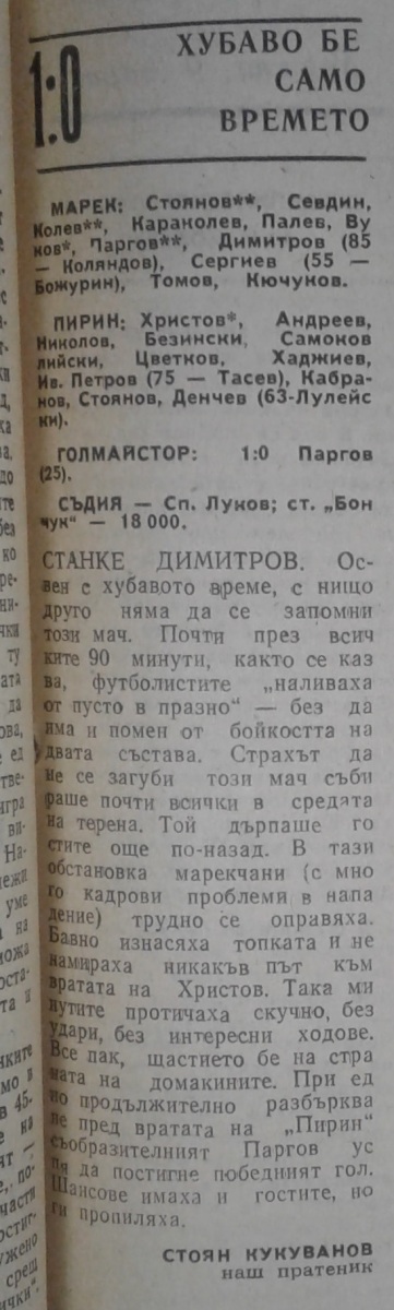 «Марек» Станке-Димитров - «Пирин» Благоевград - 1:0