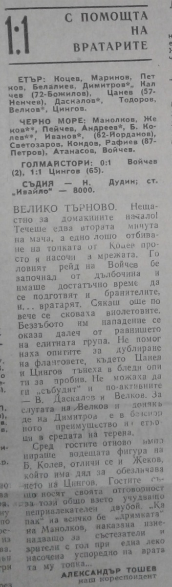 «Этыр» Велико-Тырново - «Черно море» Варна - 1:1