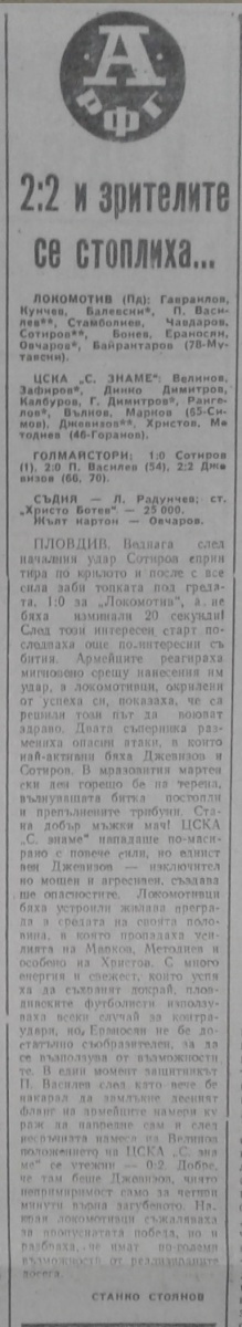 «Локомотив» Пловдив - «ЦСКА Септемврийско Знаме» София - 2:2