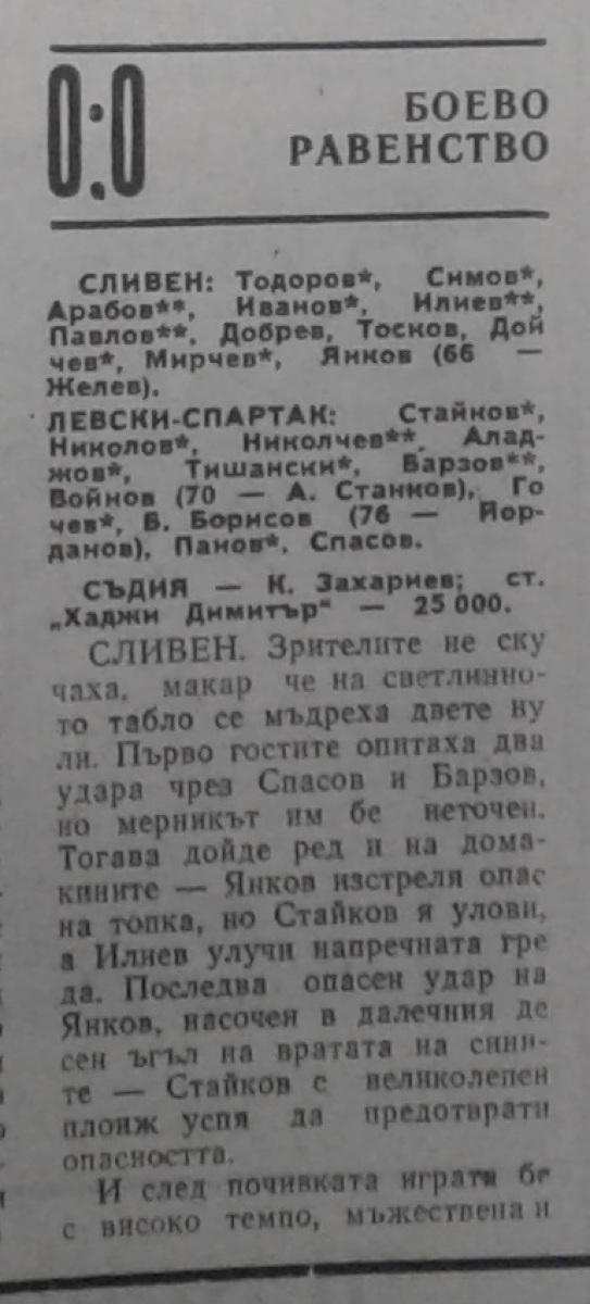АФД Сливен - «Левски-Спартак» София - 0:0