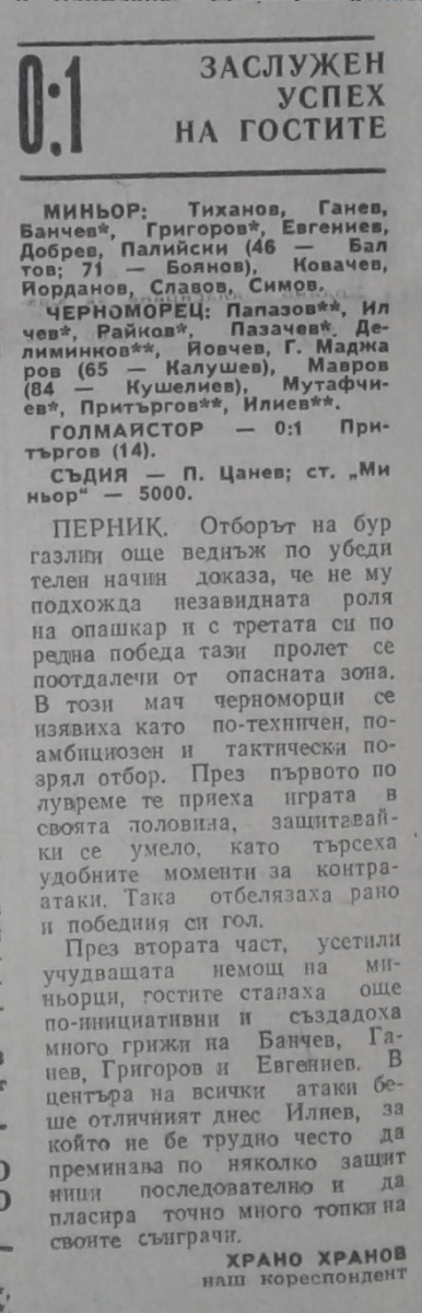 «Минёр» Перник - «Черноморец» Бургас - 0:1
