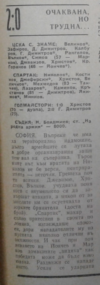 «ЦСКА Септемврийско Знаме» София - «Спартак» Плевен - 2:0