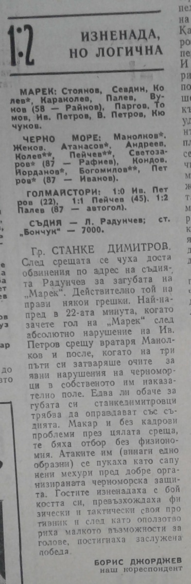 «Марек» Станке-Димитров - «Черно море» Варна - 1:2