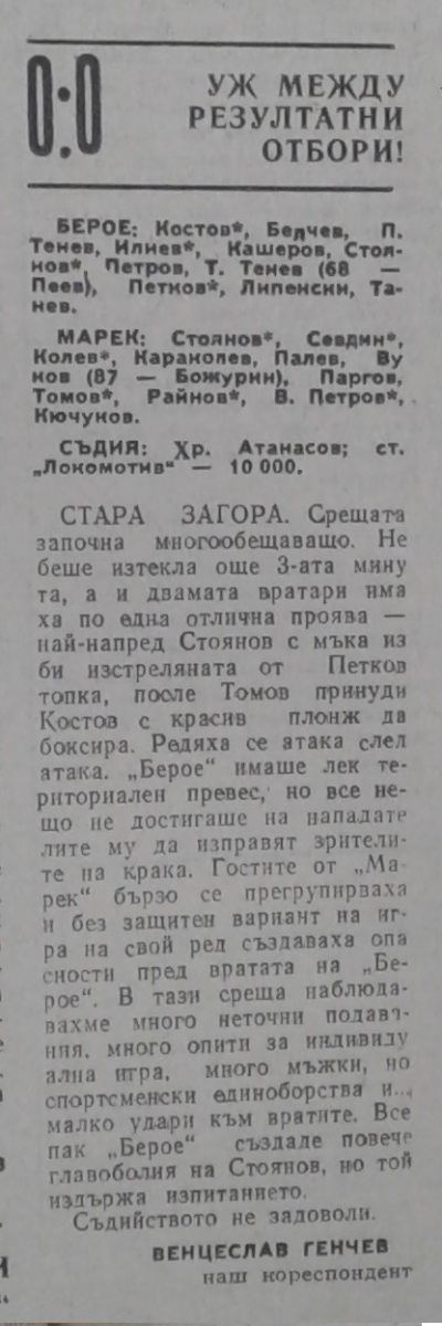 «Берое» Стара-Загора - «Марек» Станке-Димитров - 0:0