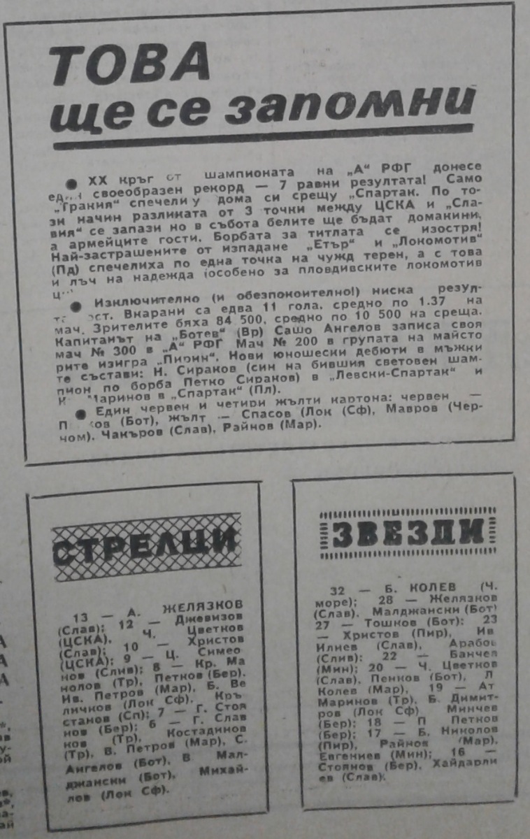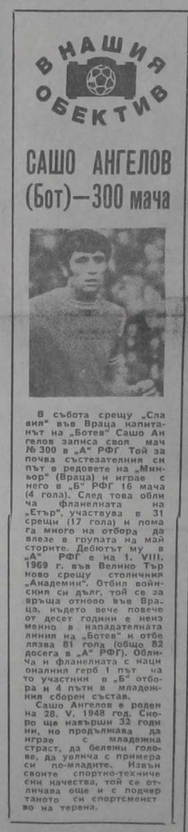 Сашо Ангелов (Ботев) провёл свой 300-й матч в А РФГ.
