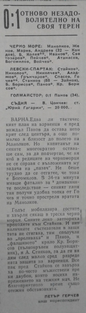 «Черно море» Варна - «Левски-Спартак» София - 0:1