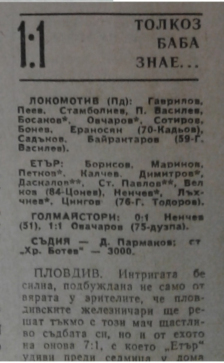 «Локомотив» Пловдив - «Этыр» Велико-Тырново - 1:1