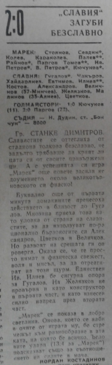 «Марек» Станке-Димитров - «Славия» София - 2:0