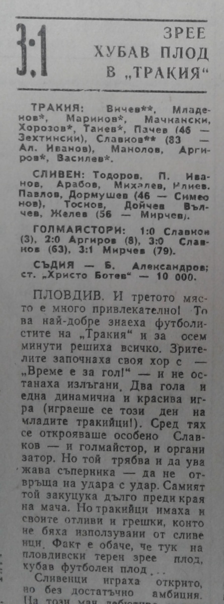 «Тракия» Пловдив - АФД Сливен - 3:1