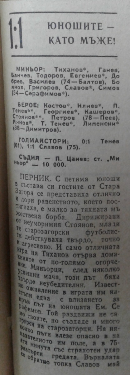 «Минёр» Перник - «Берое» Стара-Загора - 1:1
