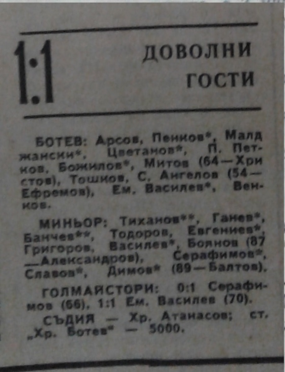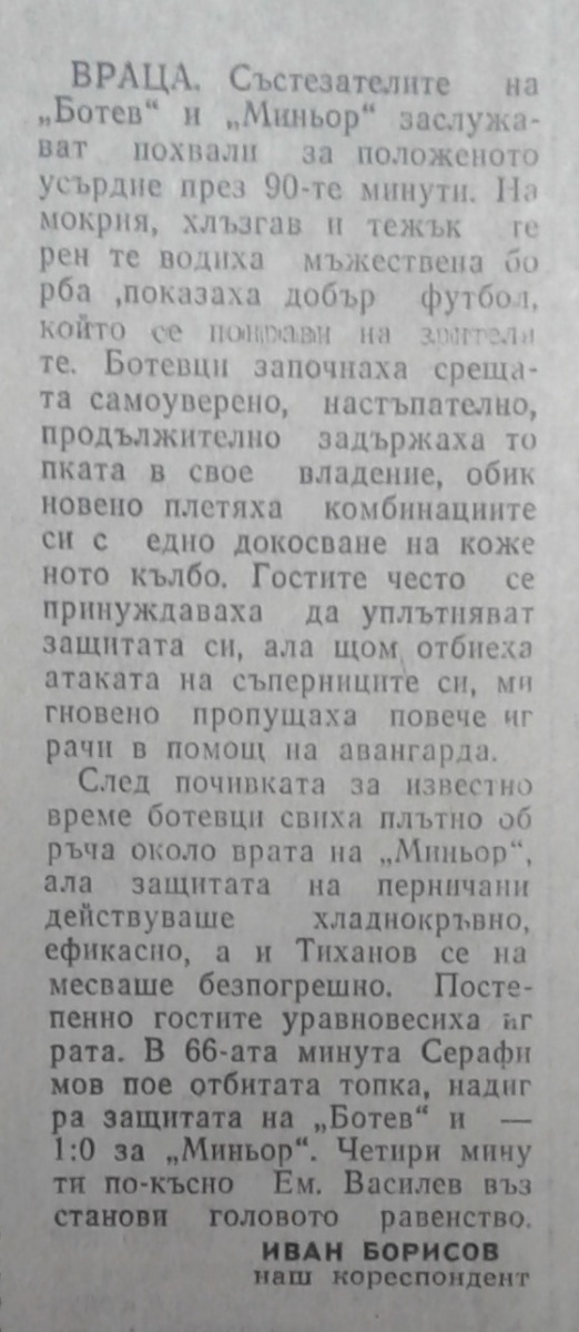 «Ботев» Враца - «Минёр» Перник - 1:1