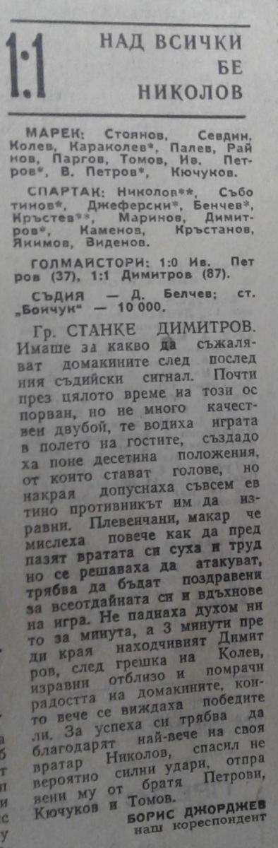 «Марек» Станке-Димитров - «Спартак» Плевен - 1:1