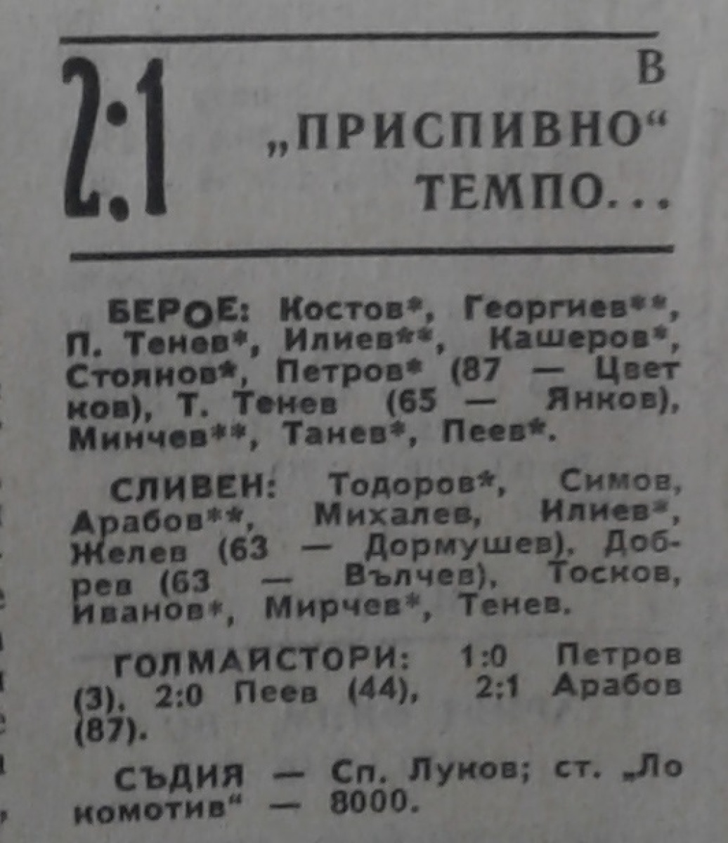 «Берое» Стара-Загора - АФД Сливен - 2:1