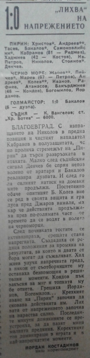 «Пирин» Благоевград - «Черно море» Варна - 1:0
