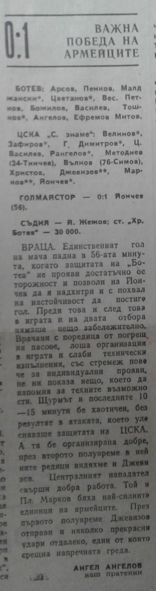 «Ботев» Враца - «ЦСКА Септемврийско Знаме» София - 0:1