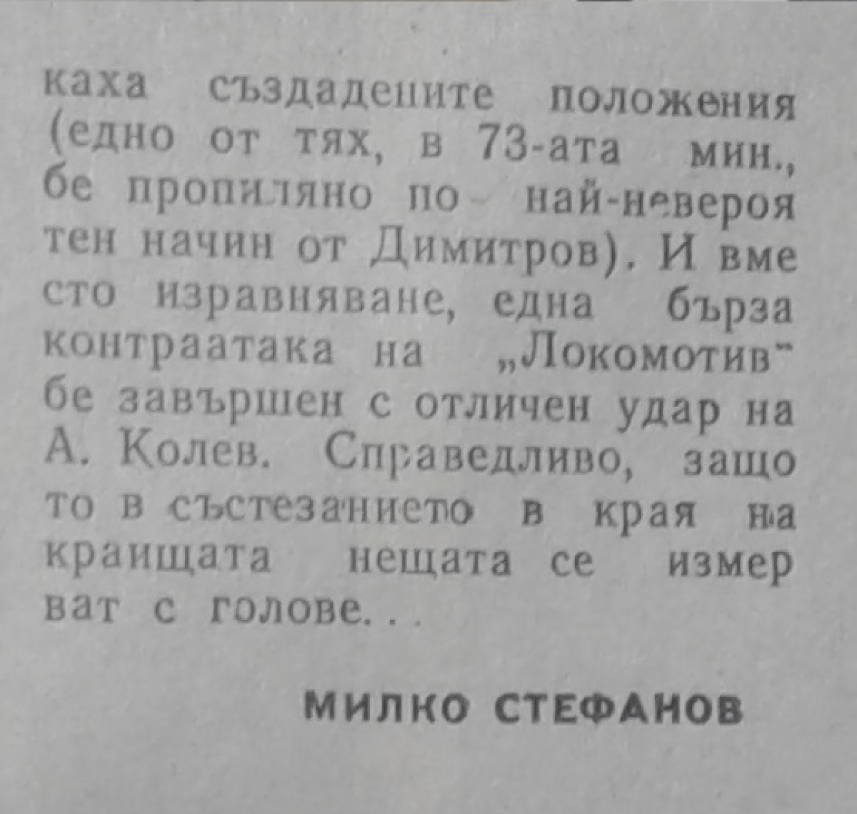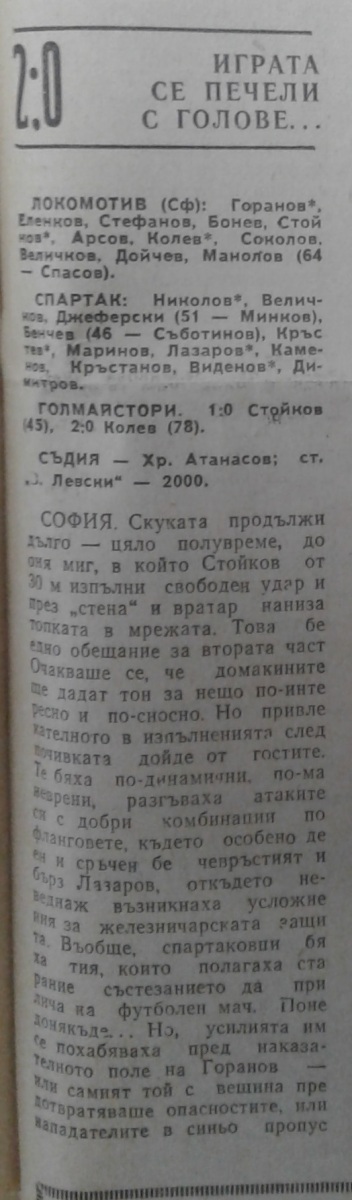 Ангел Колев (Лок.София) провёл свой 200-йматч в А РФГ. Васил Минков (Спартак Плевен) провёл свой 150-й матч в А РФГ.