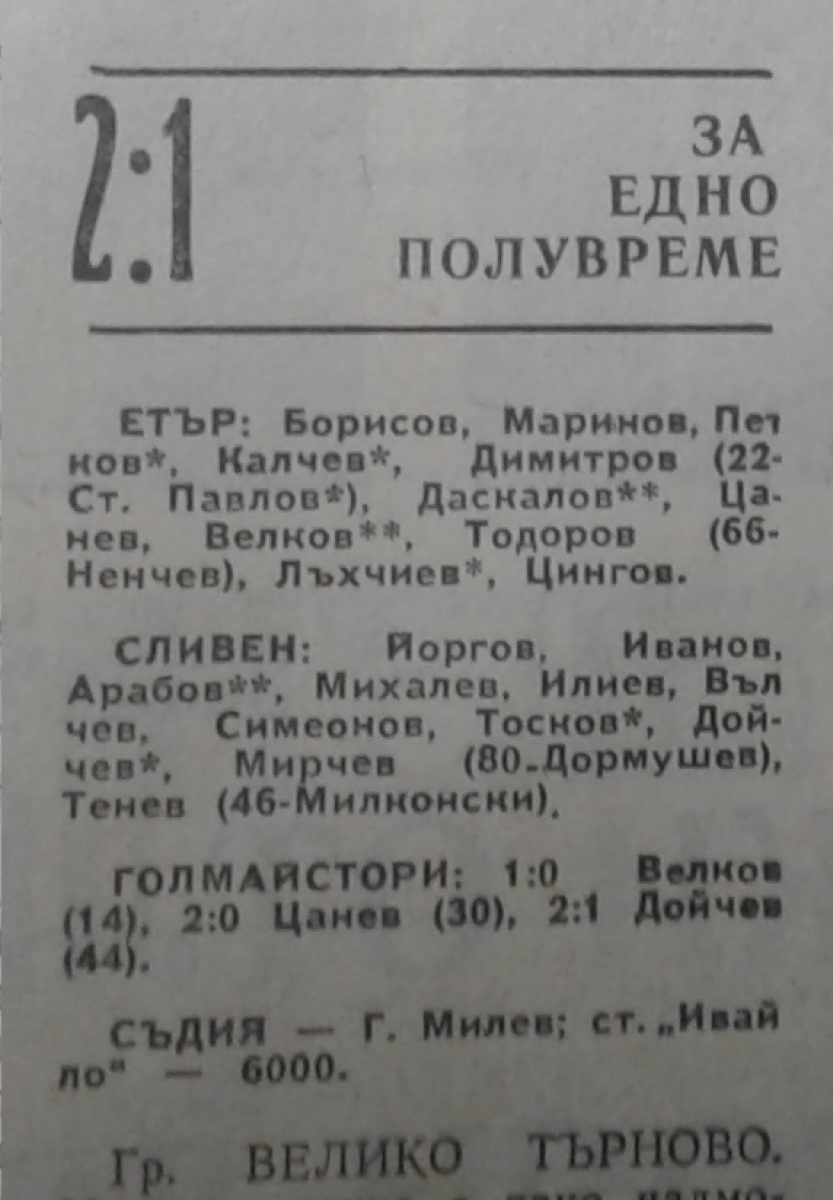 «Этыр» Велико-Тырново - АФД Сливен - 2:1