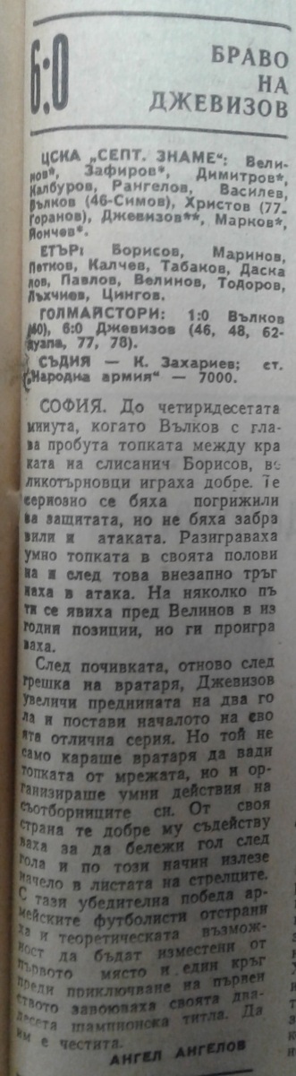 «ЦСКА Септемврийско Знаме» София - «Этыр» Велико-Тырново - 6:0