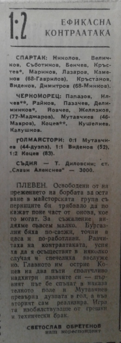 «Спартак» Плевен - «Черноморец» Бургас - 1:2