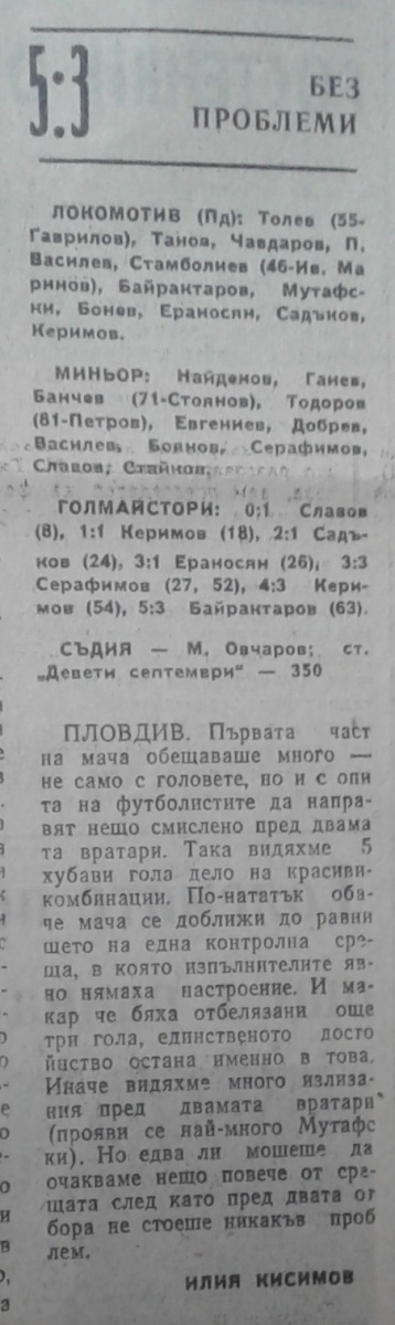 «Локомотив» Пловдив - «Минёр» Перник - 5:3