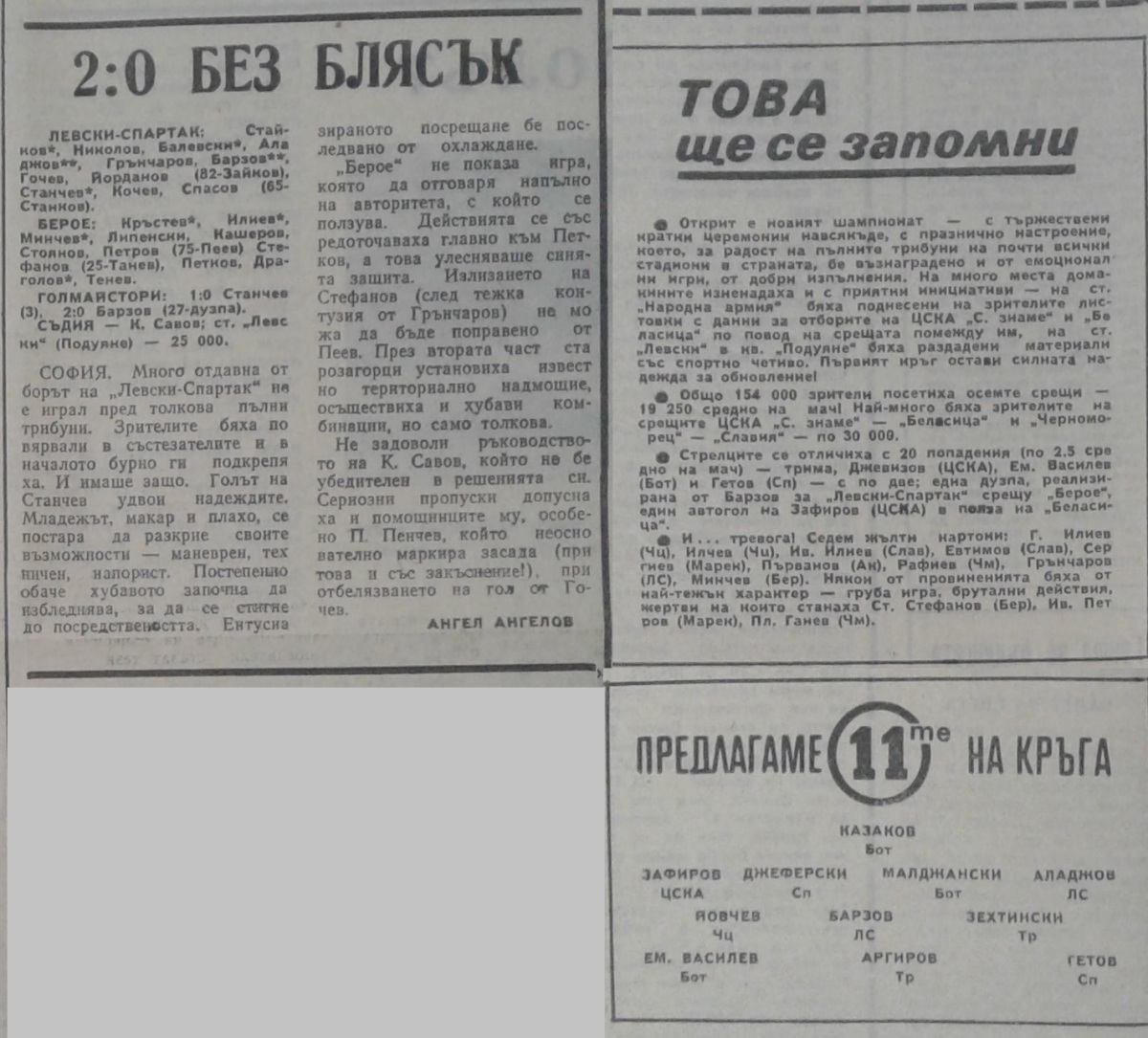 «Левски-Спартак» София - «Берое» Стара-Загора - 2:0