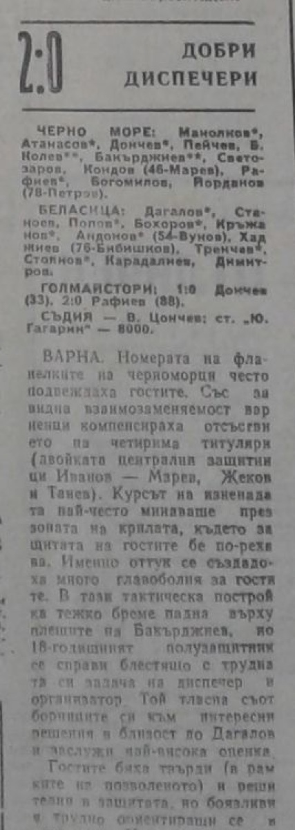 «Черно море» Варна - «Беласица» Петрич - 2:0