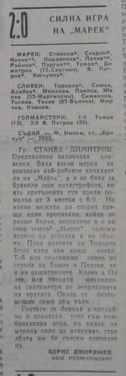 «Марек» Станке-Димитров - АФД Сливен - 2:0