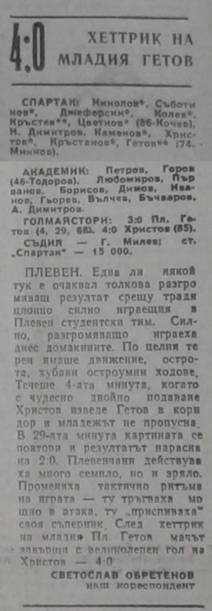 «Спартак» Плевен - «Академик» София - 4:0