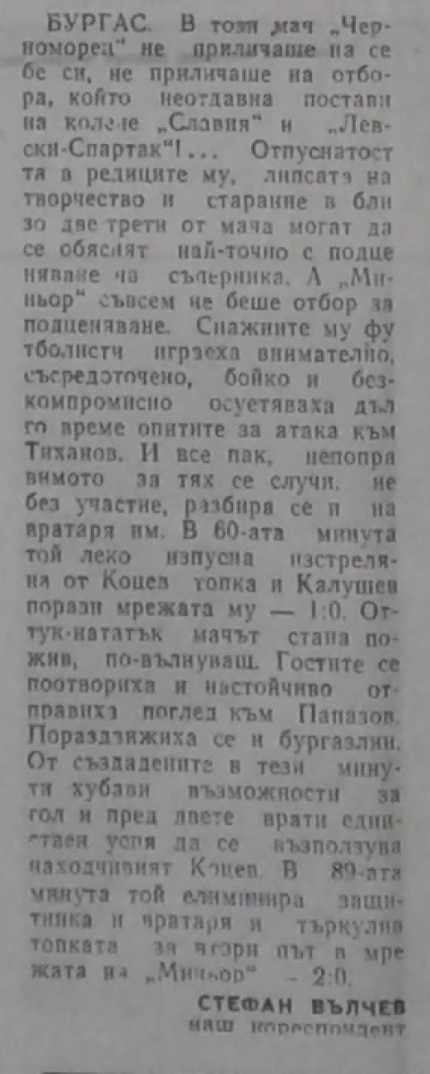 Ангел Славов (Миньор) провёл свой 150-й матч в А РФГ