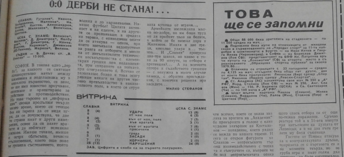 «Славия» София - «ЦСКА Септемврийско Знаме» София - 0:0