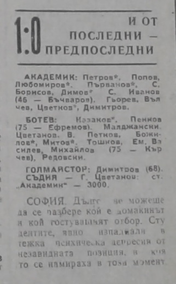 «Академик» София - «Ботев» Враца - 1:0