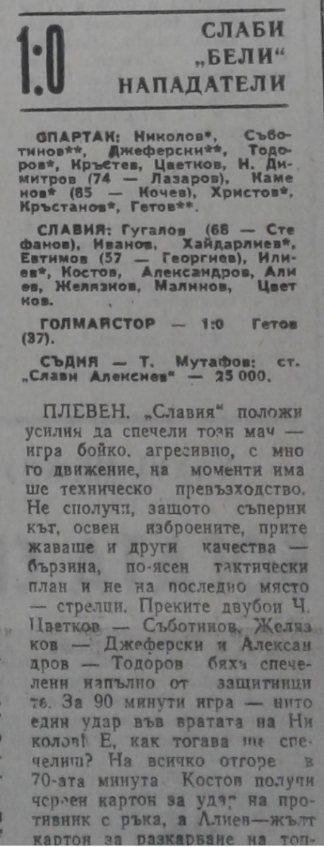 «Спартак» Плевен - «Славия» София - 1:0