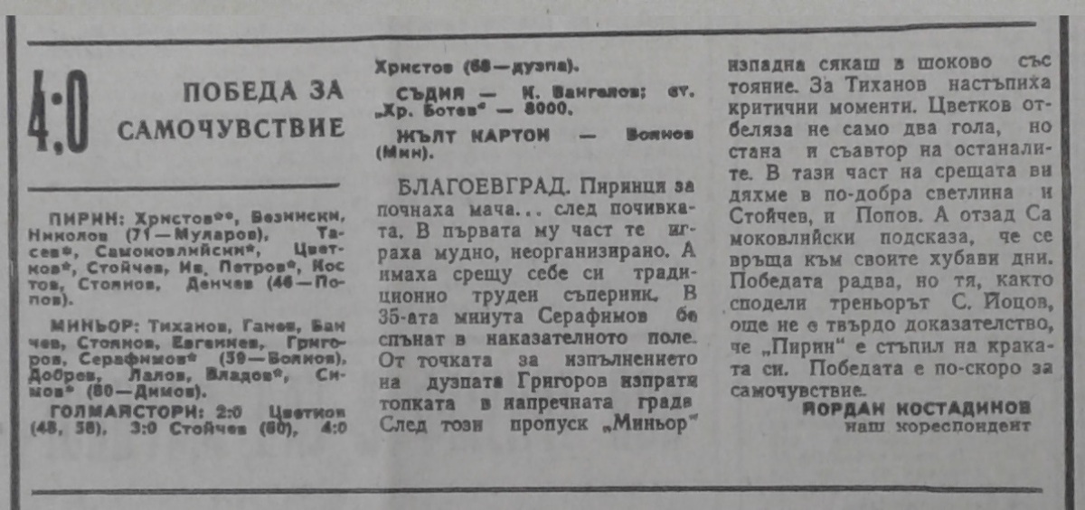«Пирин» Благоевград - «Минёр» Перник - 4:0