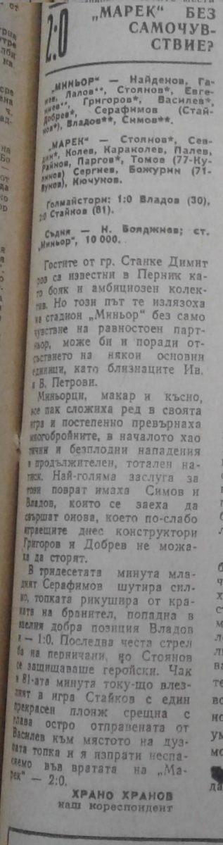 «Минёр» Перник - «Марек» Станке-Димитров - 2:0