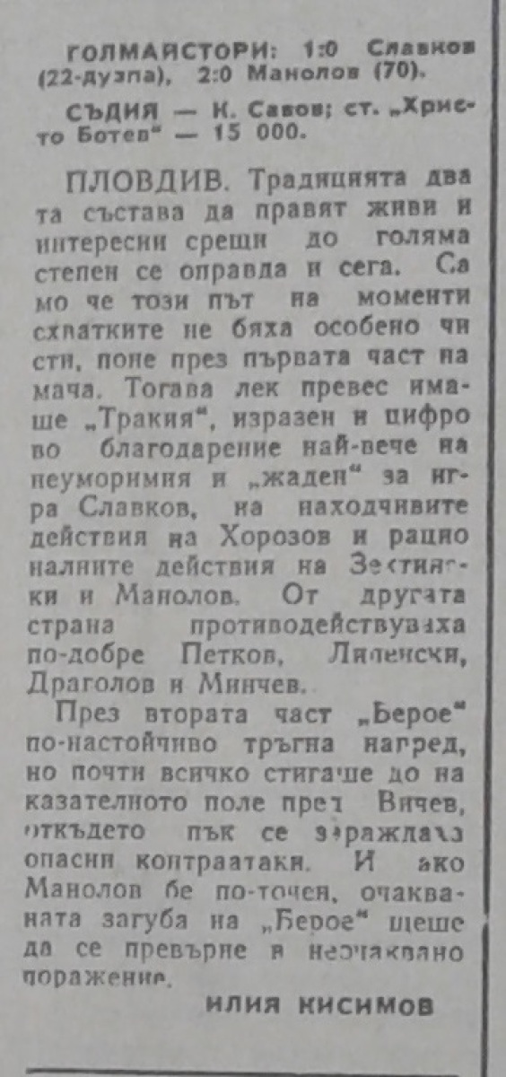 «Тракия» Пловдив - «Берое» Стара-Загора - 2:0