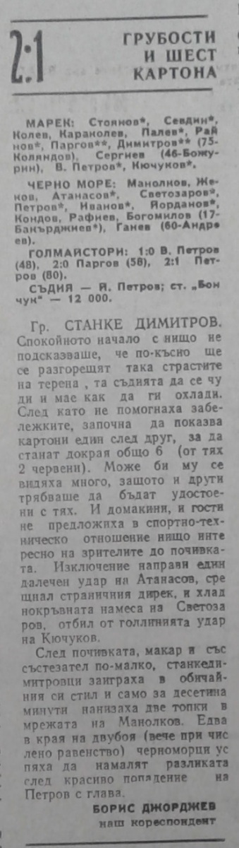 «Марек» Станке-Димитров - «Черно море» Варна - 2:1