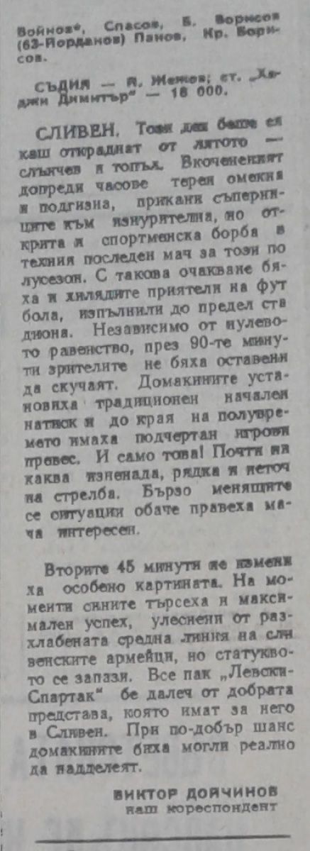 АФД Сливен - «Левски-Спартак» София - 0:0